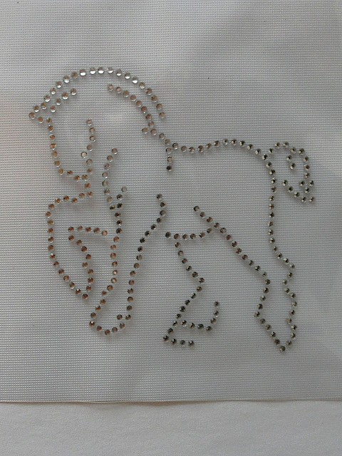 6. Ziehe Sie die Transferfolie vorsichtig ab, sollten Steinchen noch nicht verklebt sein, bitte Bügelvorgang wiederholen!