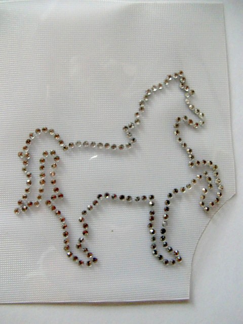 6. Ziehe Sie die Transferfolie vorsichtig ab, sollten Steinchen noch nicht verklebt sein, bitte Bügelvorgang wiederholen!