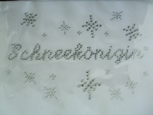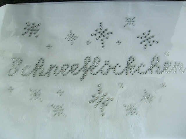 6. Ziehe Sie die Transferfolie vorsichtig ab, sollten Steinchen noch nicht verklebt sein, bitte Bügelvorgang wiederholen!