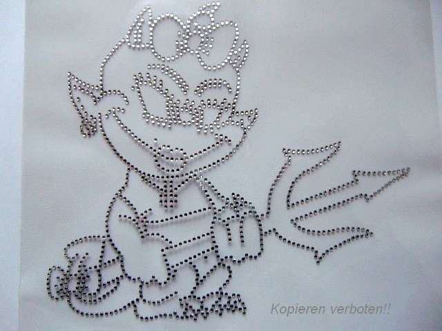6. Ziehe Sie die Transferfolie vorsichtig ab, sollten Steinchen noch nicht verklebt sein, bitte Bügelvorgang wiederholen!