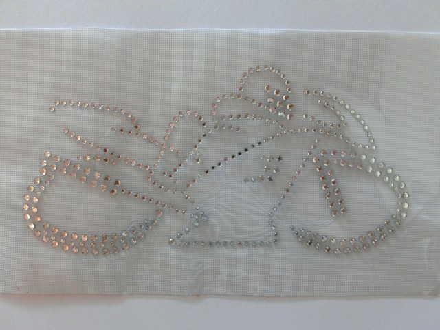 6. Ziehe Sie die Transferfolie vorsichtig ab, sollten Steinchen noch nicht verklebt sein, bitte Bügelvorgang wiederholen!