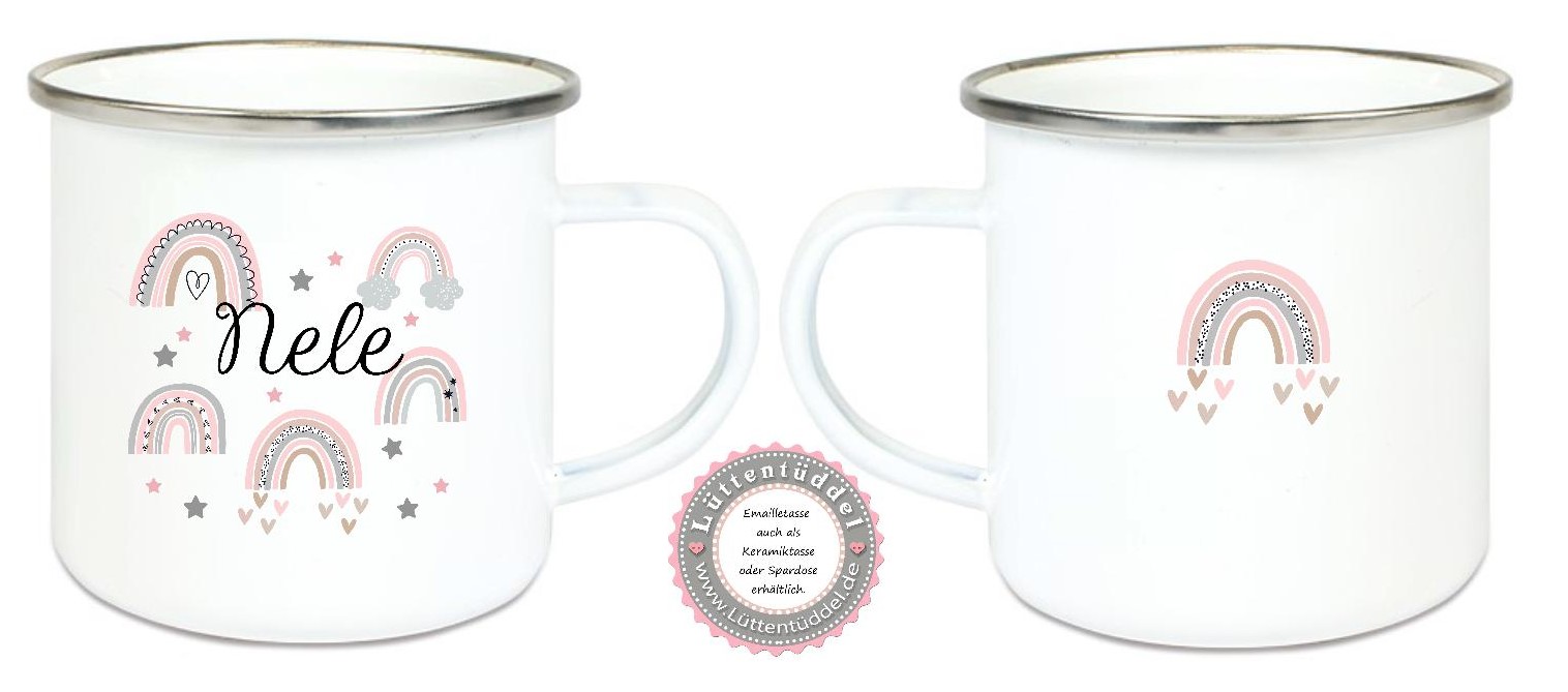 Becher Tasse Emaillebecher ganz viele Regenbogen, Mädchen, Einschulung KITA Wunschname, Dankeschön, Geburtstag, Abschied, Jubiläum, Geschenk, Kommunion, Firmung Konfirmation, Becher von Lüttentüddel