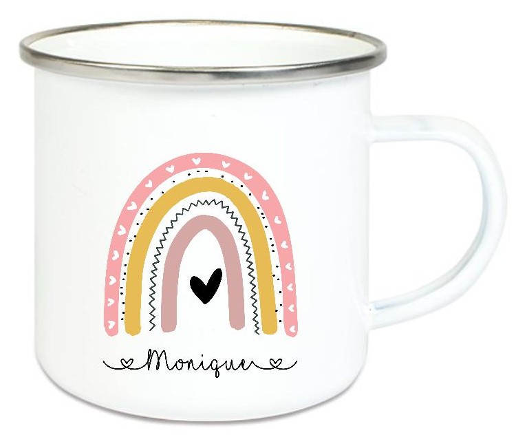 Tasse Emailletasse Regenbogen, Mädchen, Einschulung KITA Wunschname, Dankeschön, Geburtstag, Abschied, Jubiläum, Geschenk, Kommunion, Firmung Konfirmation, Becher von Lüttentüddel