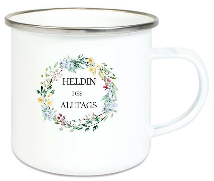 ♥ Tasse Emailletasse Blumen Kranz Heldin des Alltags, Freundin Dankeschön, Geburtstag, Vatertag, Abschied, Jubiläum, Geschenk, Becher von Lüttentüddel