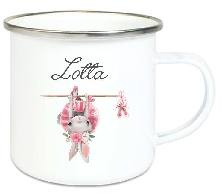zauberhafte Tasse Emailletasse Ballerina Häschen sportlich, Boho Name, Wunschname, KITA Kindergarten, Einschulung, Dankeschön, Abschied, Jubiläum, Geschenk, Becher von Lüttentüddel