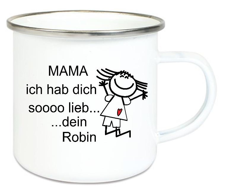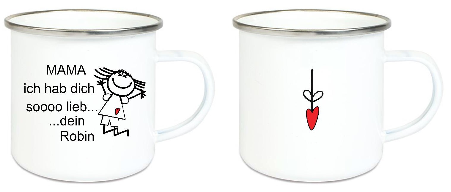 Tasse Emailletasse Strichmännchen Mama... Name, Wunschname, Dankeschön, Abschied, Jubiläum, Geschenk, Becher von Lüttentüddel