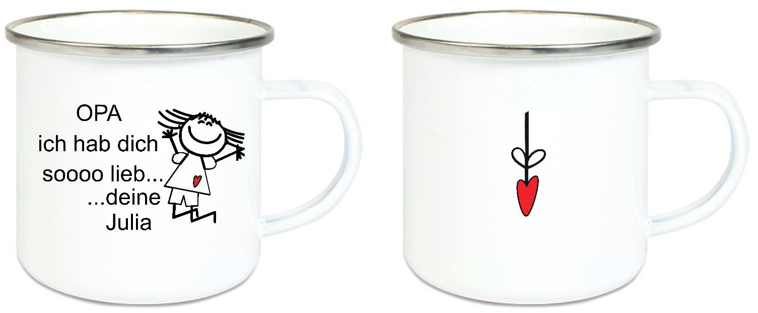 Tasse Emailletasse Strichmännchen Opa... Name, Wunschname,Vatertag, Muttertag Dankeschön, Abschied, Jubiläum, Geschenk, Becher von Lüttentüddel