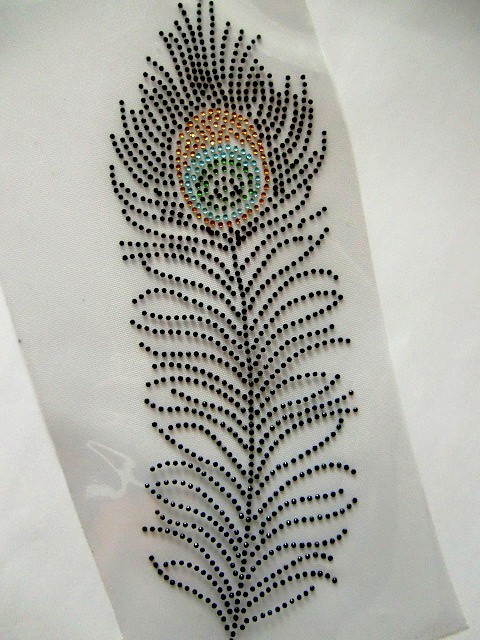 Zauberhafte Feder Pfau Vogel Strass  Hotfix Hotglue Bügelbild Shirt Hose Jacke Tasche