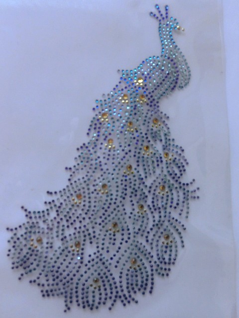 Preview: Pfau Phönix Bügelbild STRASS Hotfix Shirt Jacke Tasche Mantel Tischdecke Top