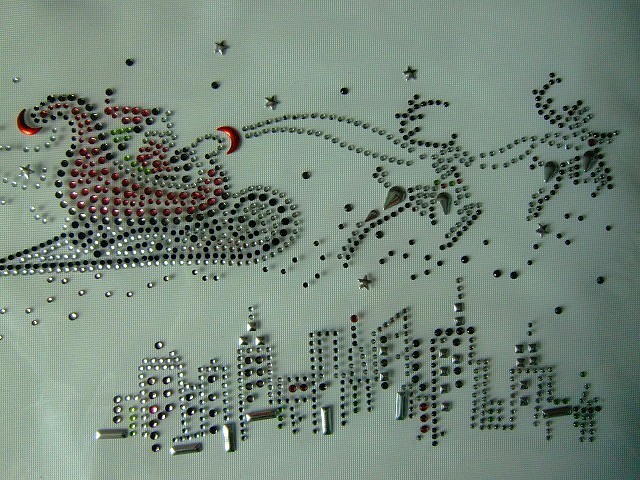Hirsche Hirsche mit Schlitten über der Stadt Strass Bügelbild Hotfix Hotglue